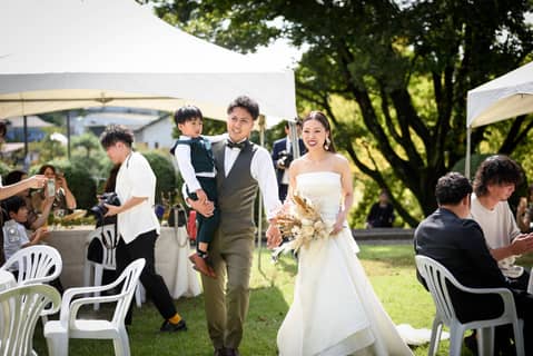 緑に囲まれた開放的な空間で、ゲストと同じ目線で自然体に。気取らず、飾らず、 “自分たちらしい時間” が過ごせる結婚式を。