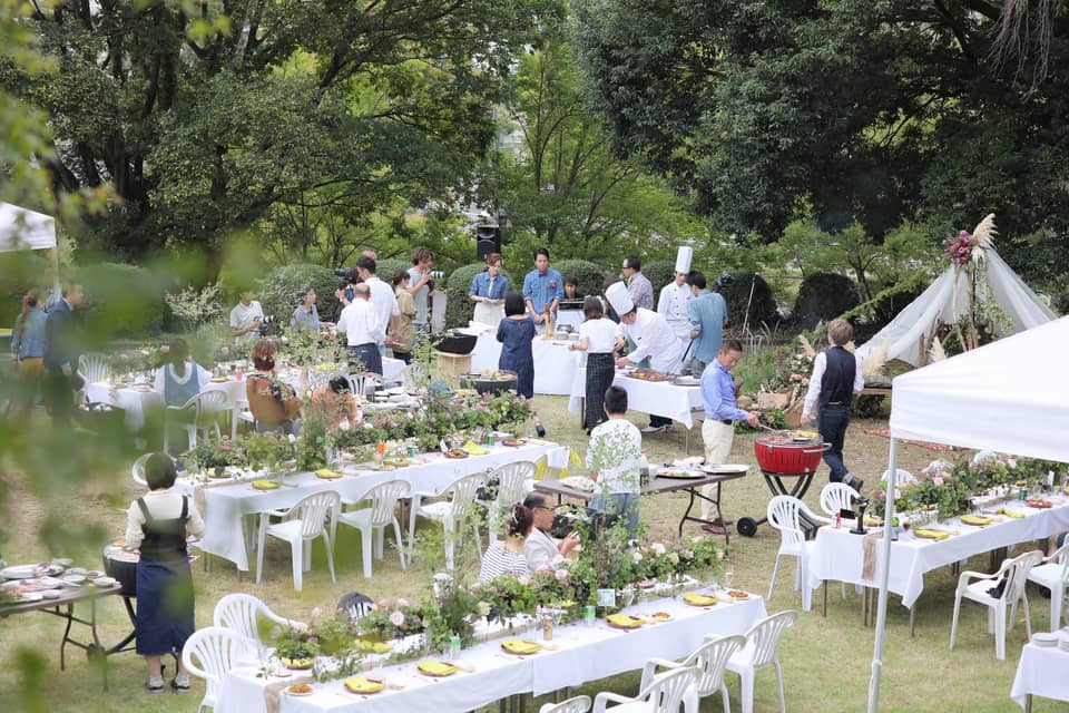 緑に囲まれた空間だから、気取らずカジュアルに過ごせる。まるで仲間同士のホームパーティのような距離感。